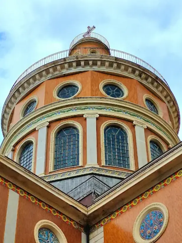 The modern sanctuary follows a basilica plan, designed in the shape of a Latin cross, featuring three naves, a square transept, and a semicircular apse. The church spans 64 meters in length and 24 meters in width. The base of the sanctuary is made of billiemi marble, while the roof is covered in blue ceramics. A prominent loggia, 76 meters long and 8 meters wide, is located on the northern side of the church, adjacent to the left nave, offering visitors a stunning view of the Marinello lakes. Below the loggia, a large room connects to the crypt, which serves as the sanctuary’s penitentiary.